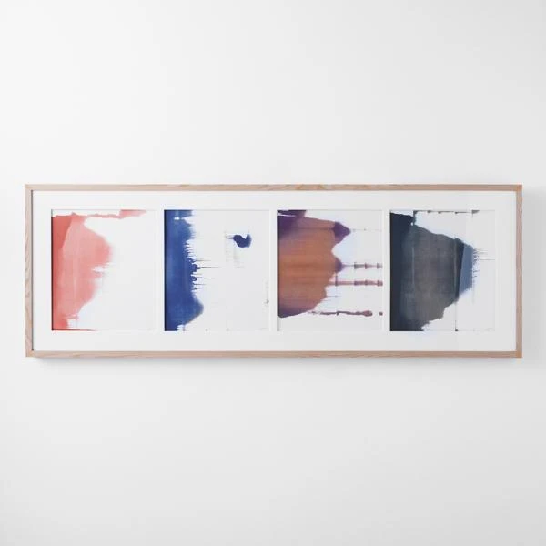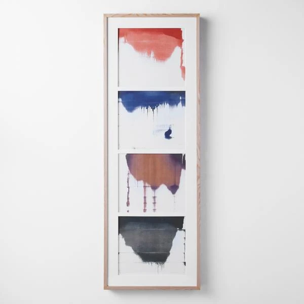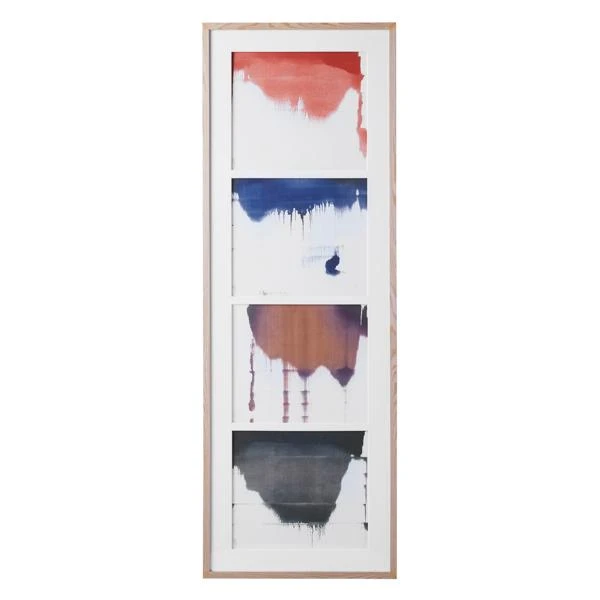 Add visual interest to your wall with Alchemie I. This piece makes bold use of color and is appealing in its simplicity. Printed on kozo paper with white matboard under acrylic glass, the image is encased in a natural wood frame.