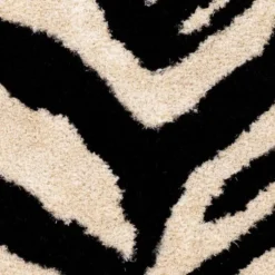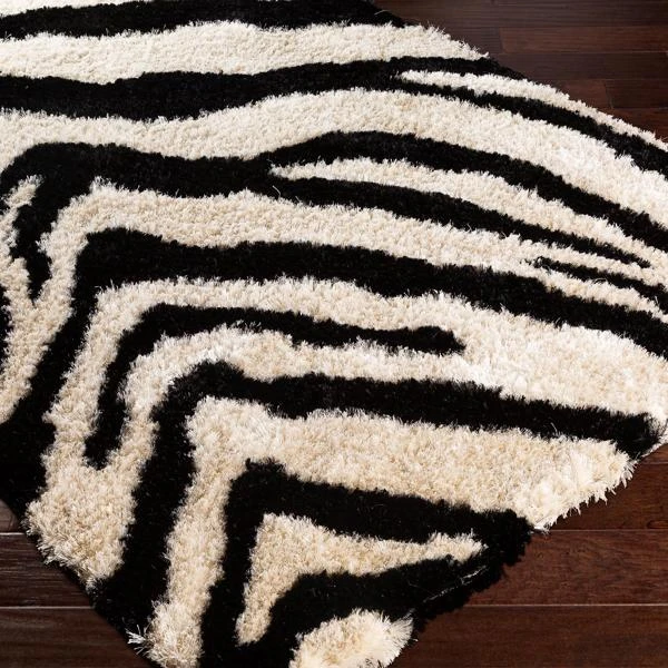 Featuring a zebra pattern in black and ivory, this plush hand-tufted rug will add texture, dimension, and style to any room it’s in.