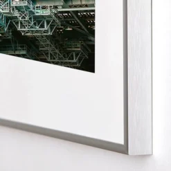 - Styled horizontally or vertically, an innovative wall mount creates depth appearing to float off the wall.