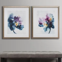 Rendered with beautiful washes of color, this limited-edition floral abstraction from artist Joyce Combs is printed on archival paper, matted, and displayed in a silver frame.