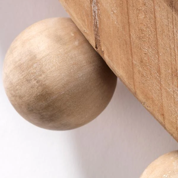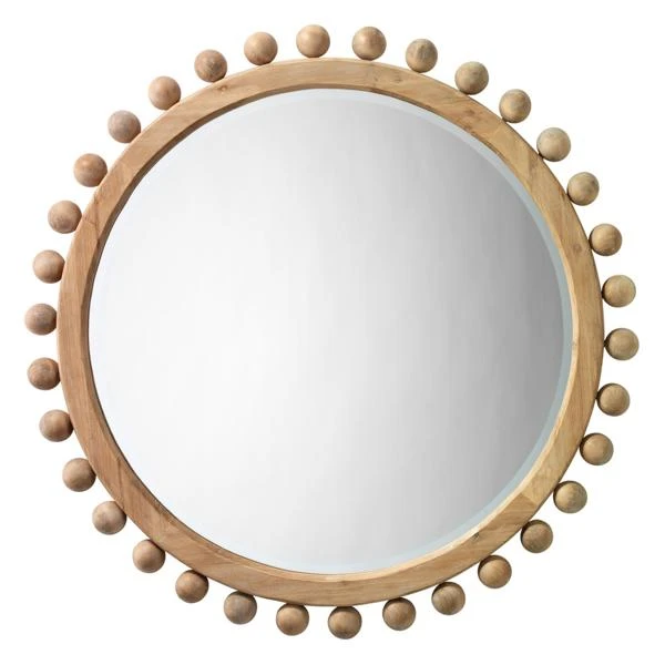 Crafted of wood with a natural finish, this mirrorās round frame is hand-carved with dozens of spheres for a playful yet sophisticated look that works well in a variety of decor styles.