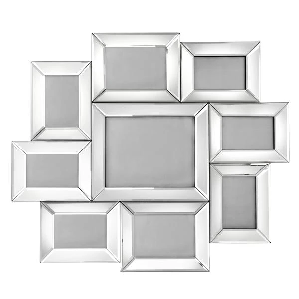 Display your fondest memories in an organized and decorative way with ourstylish mirrored Broadway Gallery Frame. Nine independent frames, hung invarious orientations and arranged in a montage style, make it effortless tocelebrate your treasured moments in an artistic way. Each frame featuresbeveled mirrored borders for modern appeal.