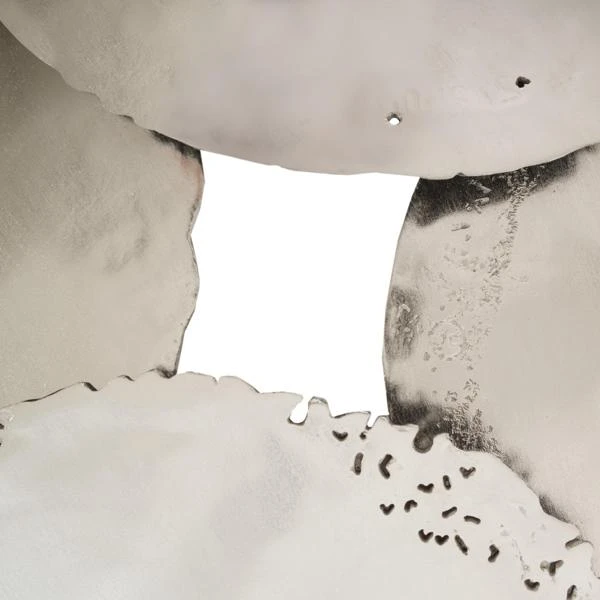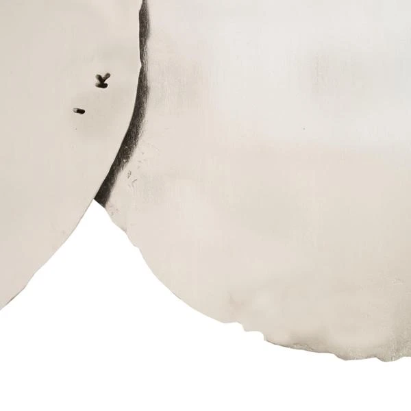 Bring luxe shine and visual interest to any wall with these oil-drum disks. Made from resin with a silver-leaf finish, skilled artisans give each piece a patinaādetailed with holes, imprinted writing, and jagged edgesāthat resembles the original oil drum it was cast from.