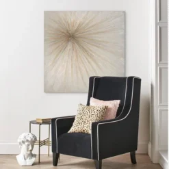 Bold, metallic brushstrokes form an eye-catching sunburst in this original work by artist Beverly Fuller, while glitter embellishments add a hint of sparkle.