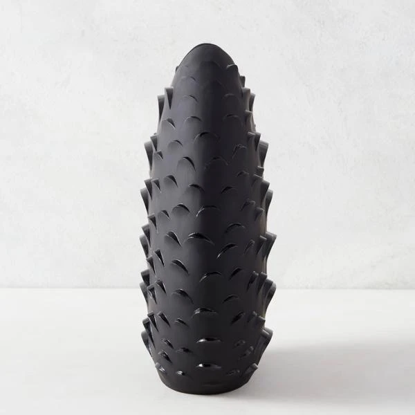 A stunning accent even when it’s not holding blooms or branches, this floor vase is made from lightweight resin with a matte black finish and textural scalloped design reminiscent of snake scales.