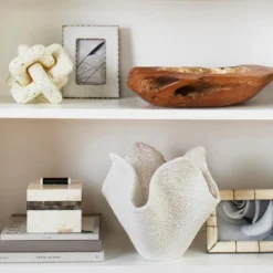 Featuring a ruffled coral-like design in a white finish, this beautifully textured vase adds a nautical accent to any shelf.