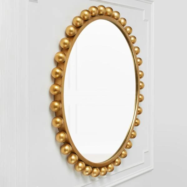 A standout addition to any space, this mirror shows off a bauble border and metallic gold finish.