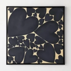 - Set in a black floater frame.