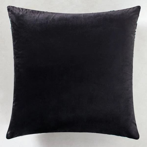 A stylish addition to any sofa, bed, or chair, this plush cut-velvet pillow features a chinoiserie-inspired dragon design. Solid black velvet back. Insert included.