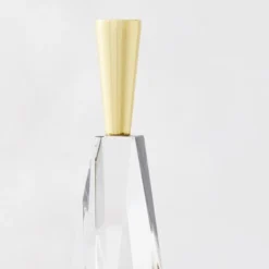 Designed with a faceted glass column and golden top, this taper holder is a stunning addition to any decor.