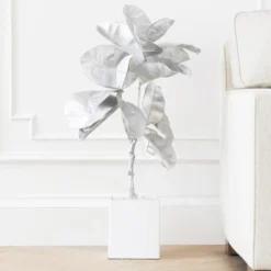 Graceful leaves, loves the indoors, super low-maintenance. This impressive (more than 3 feet tall) faux banana leaf plant comes pre-potted. You get gorgeous greenery with a modern pop of silver, all in one. No water or sunlight required.