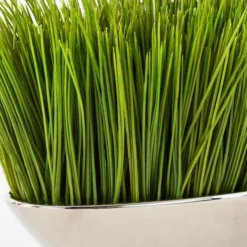 Z Gallerieās Faux Grass in a Silver Pot brings the look of fresh greenery to a room with a stylish contemporary flair. A dense tuft of deep green artificial grass is planted in a chic elongated shiny silver pot to create a sleek, minimalist modern display.