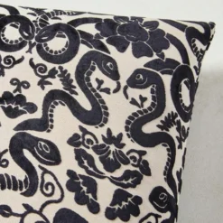 An intriguing snake-and-flower design pops on this cut-velvet pillow, making it a stunning accent for any sofa, bed, or chair. Insert included.Ā