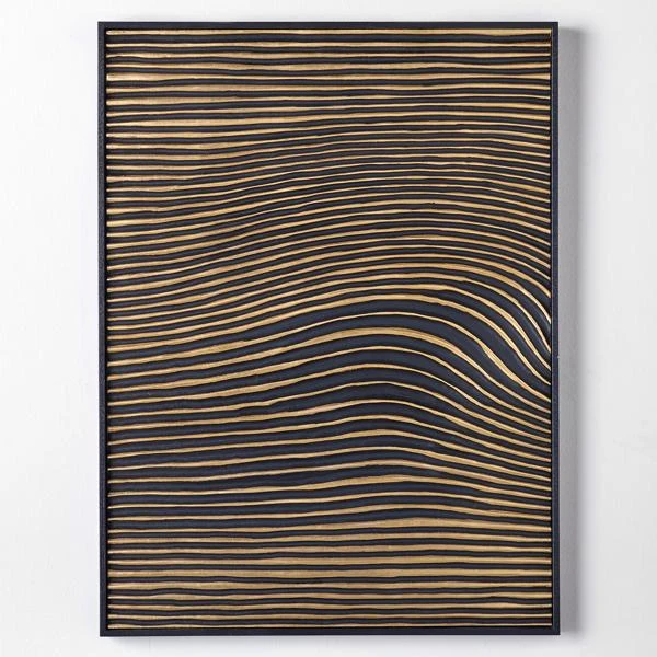 Looking for a way to bring the outdoors into your decor style? Adorn your walls with natural elements for a more rustic vibe. Illusions I is a carved wood panel with hand-applied gold paint accents. Set in a low-profile wood frame, this piece is a standout that will set the tone for your space when paired with the second in the series.