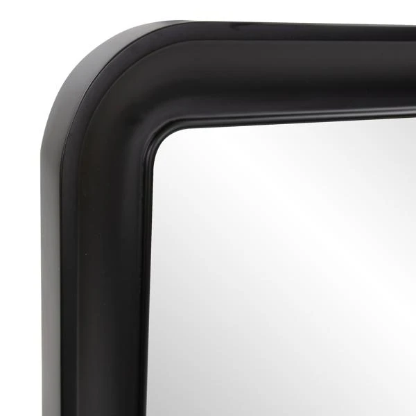 The elegant lines and framing of the Joelle Wall Mirror will instantly make this a new favorite in any decor project. From a vanity to an entryway this matte black gracefully sloped framed mirror adds a touch of sophistication where ever it is installed.