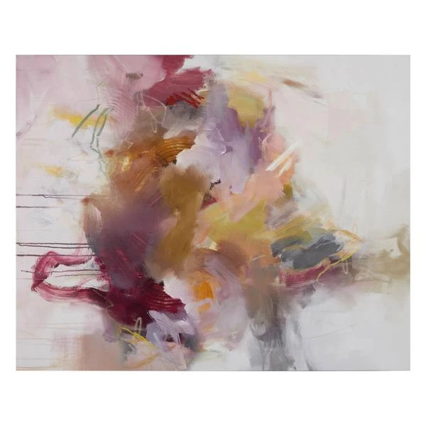 This beautifully layered abstraction fromĀ artist Jean Kenna showcases soft washes of blush and plum hues. Printed on gallery-wrapped canvas with a hand-applied image brush gel finish for added texture. Hangs both vertically and horizontally. Unframed.