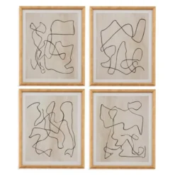 Our Maze art series features abstract ink scribbles on a cream background with white border and a simple natural wood frame.Ā