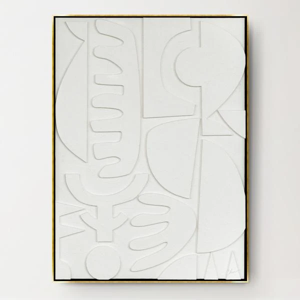 This piece by Nikki Chu is stunning and unique. A vision in monochrome, All White I will add texture and dimension to your wall. Layered birchwood is 100% hand-painted and framed in gold. Hang vertically or horizontally. Complete the look with All White I.Ā
