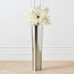 A stunning accent even when it’s not holding blooms or branches, this floor vase is made from stainless steel with a polished, mirror-like finish.