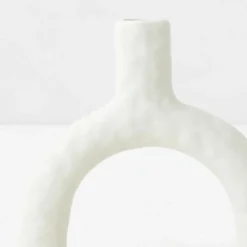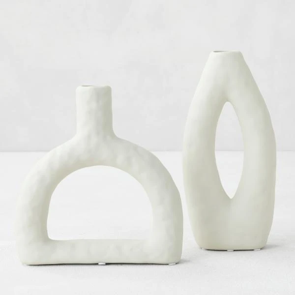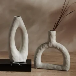 Add gallery-worthy impact to any bare surface with our Paola vase set. The distinctive silhouette and a central cut-out make our vase a sculptural stand out. It adorns a matte stone grey glaze with subtle impressions of hand to achieve a soothing organic appeal. An artful and commanding focal point for any tabletop, our vases are perfect for hosting your dried faux botanicals of freshly cut flowers. The piece can also be arranged in a modern grouping to create a dramatic display.
