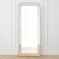 Lean into style and sophistication! Perfect for adding drama and visual interest to your space, this floor mirror features an arched top and gold finish.