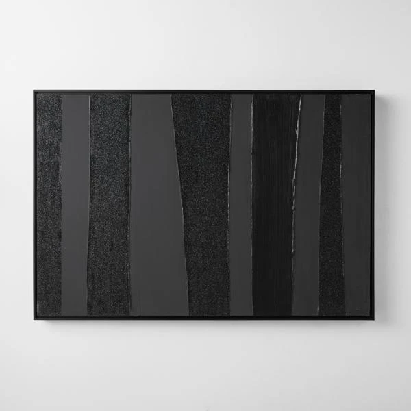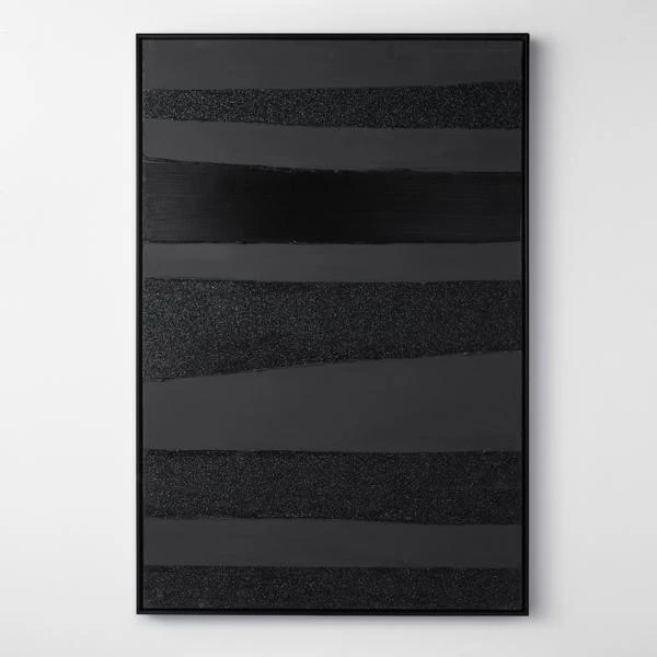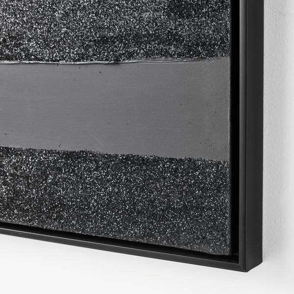Artist Savannah Yanni makes a monochromatic statement with her Power Power Series. This piece is the black on black choice, which is 100% hand painted on canvas with glitter embellishments. Set in a black floater frame, this is 1 of a series of 2.Ā