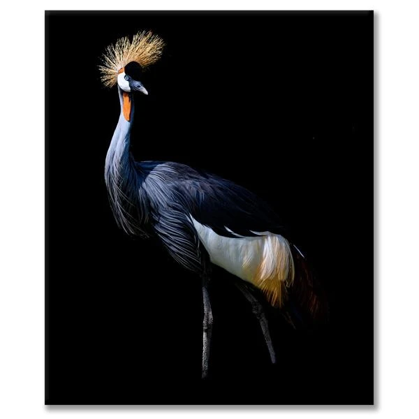 This print from photographer Mitchell Bloch beautifully captures a bird in all of its plumed finery. Printed on canvas with an image brush gel finish for added texture. Unframed.
