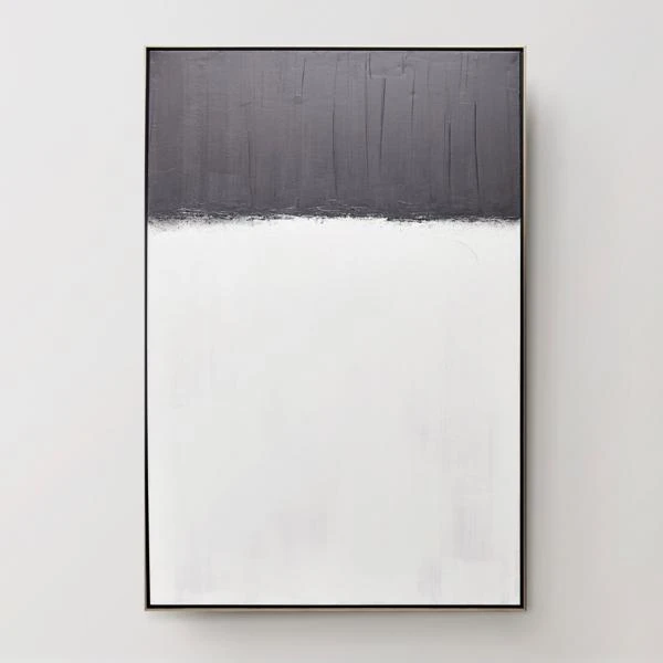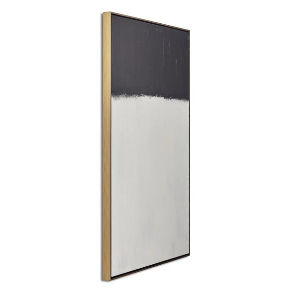 Bold brushstrokes in black and white add an incredible element of texture to this original work by artist Beverly Fuller. Painted on canvas, this piece is displayed in a gold floater frame.