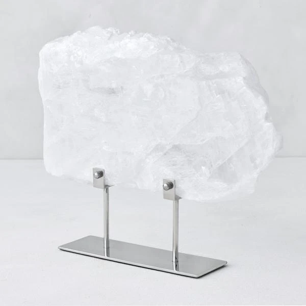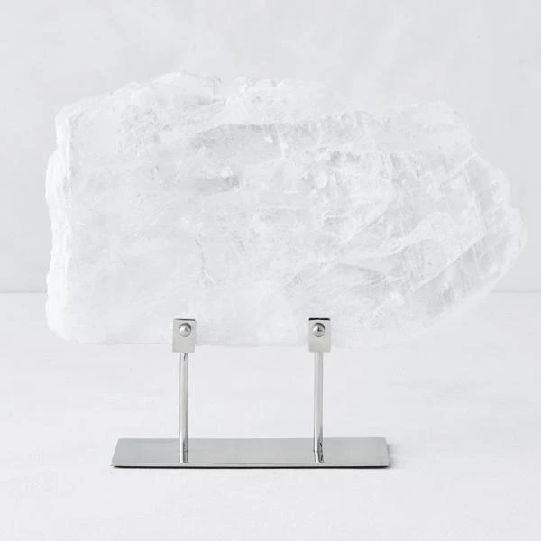 Named after Selene, the Greek goddess of the moon, selenite is a crystalline mineral embraced for its luminous appearance. Itās also coveted for the belief in its healing properties and cleansing energy. Mounted on a stainless steel stand, our radiant Selenite Slab is a stand alone piece that will start conversations.