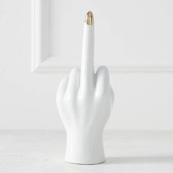 Crafted of ceramic with a glossy white and gold finish, this cheeky hand sculpture makes a stylish option for displaying jewelry (though we love it displayed on its own as well).