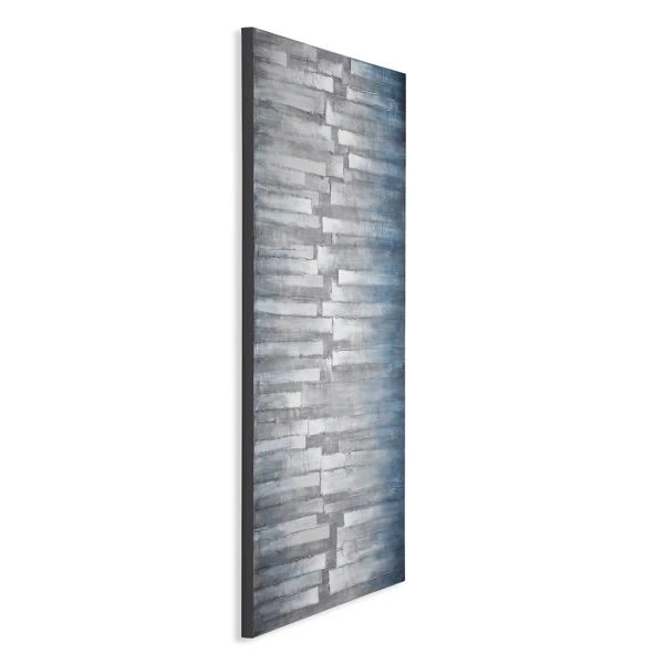 Painted on gallery-wrapped canvas, this original work from artist Beverly Fuller enlivens any wall with its linear, abstract composition and shimmering silver finish.