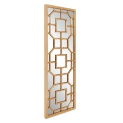 Featuring an intricately detailed lattice overlay design, this wall mirror exudes classic English style. A gold finish tops off the look.