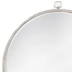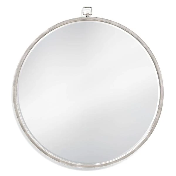 Our Towne Mirror has a silver leaf finish and is accented with a sleek pocket watch bow detail.