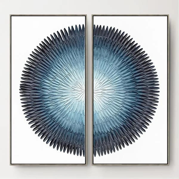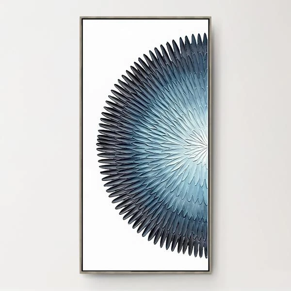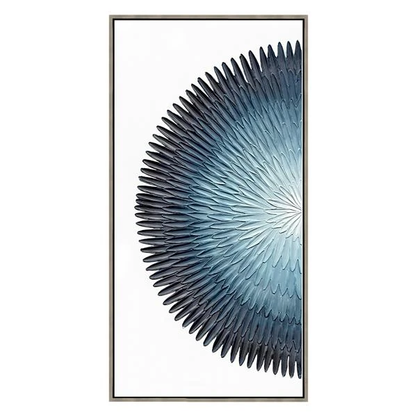 Forget your troubles, come on get happy. This hand-painted canvas makes the blues beautiful. Set in a silver floater frame, it can be hung vertically or horizontally. Complete the look with Troubles II.Ā