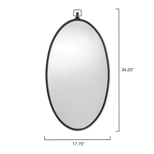 Our Wade Mirror is a gracefully narrow oval frame with beveled mirror and decorative loop that looks great in a cluster of multiples on any wall.