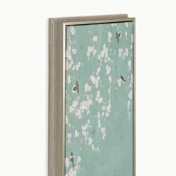 White Blossoms is a gallery wrapped canvases with hand-applied metallic champagne embellishment set in blonde and champagne (2-tone) floater frames.Ā Set of 2.