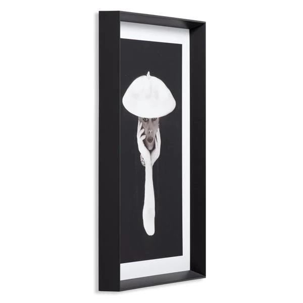 A glamorous portrait in black and white, this giclƩe print is displayed under glass in a matte black frame.